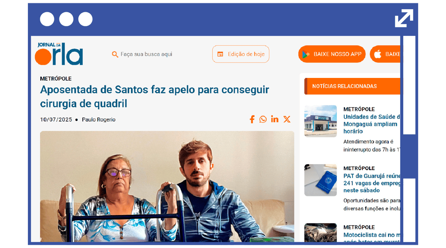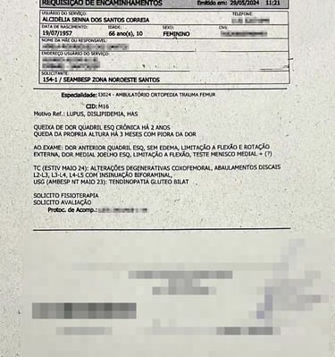 Já pensou viver com uma dor no quadril tão intensa que te impede de fazer coisas básicas, como andar ou tomar banho sozinho(a). Agora, adicione isso ao sofrimento do Lúpus e da Fibromialgia. Esperar 4 anos, ou até mais pelo SUS, é muito tempo nessas condições.